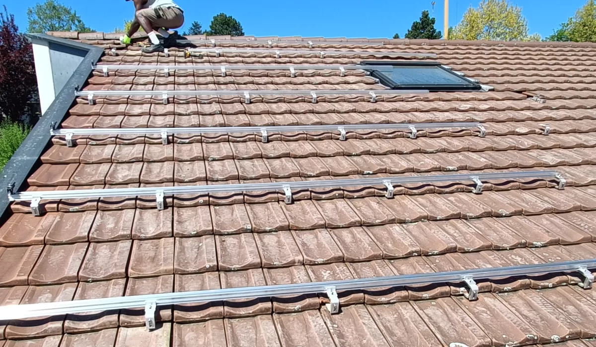 Comme en témoignent les photos du chantier, une attention particulière a été portée à l'esthétique et à l'étanchéité. L'équipe a réalisé une intégration sur mesure autour des fenêtres de toit (Velux) et posé une structure de fixation robuste sur la toiture en tuiles. Cette réalisation illustre parfaitement comment allier transition énergétique et respect de l'architecture locale fribourgeoise.