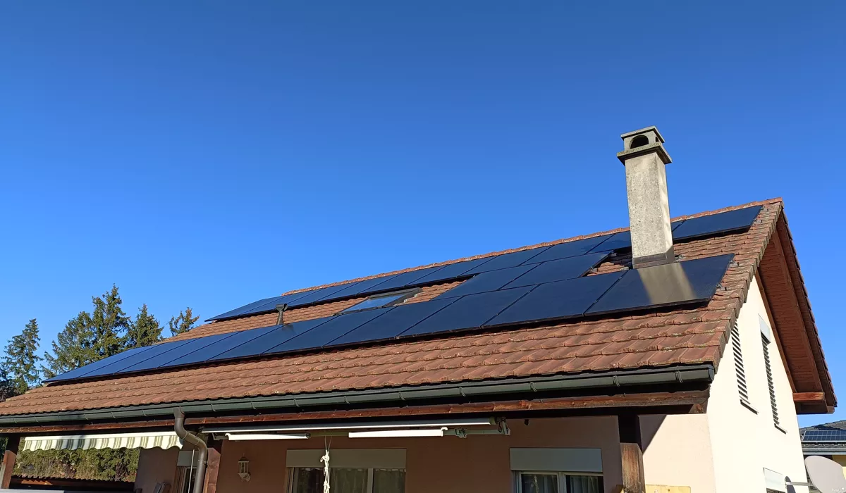 Cette réalisation située à Riaz, à proximité immédiate de Bulle, illustre parfaitement l'alliance entre performance énergétique et intégration architecturale. Pour ce projet au cœur de la Gruyère, nous avons sélectionné des panneaux photovoltaïques Swiss Solar 450Wc, une marque reconnue pour sa fiabilité et son rendement élevé, même sous le climat exigeant du canton de Fribourg. L'esthétique soignée de ces modules permet de valoriser la toiture tout en assurant une production électrique durable pour l'habitation.
